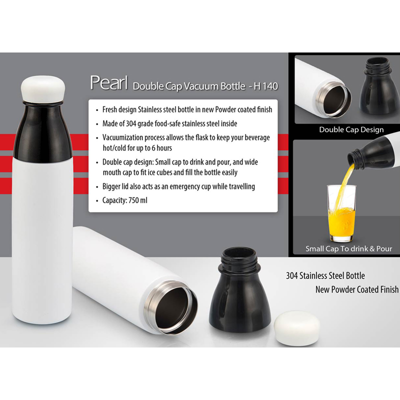 Pearl Double cap Vacuum bottle in powder coated finish (750ml)