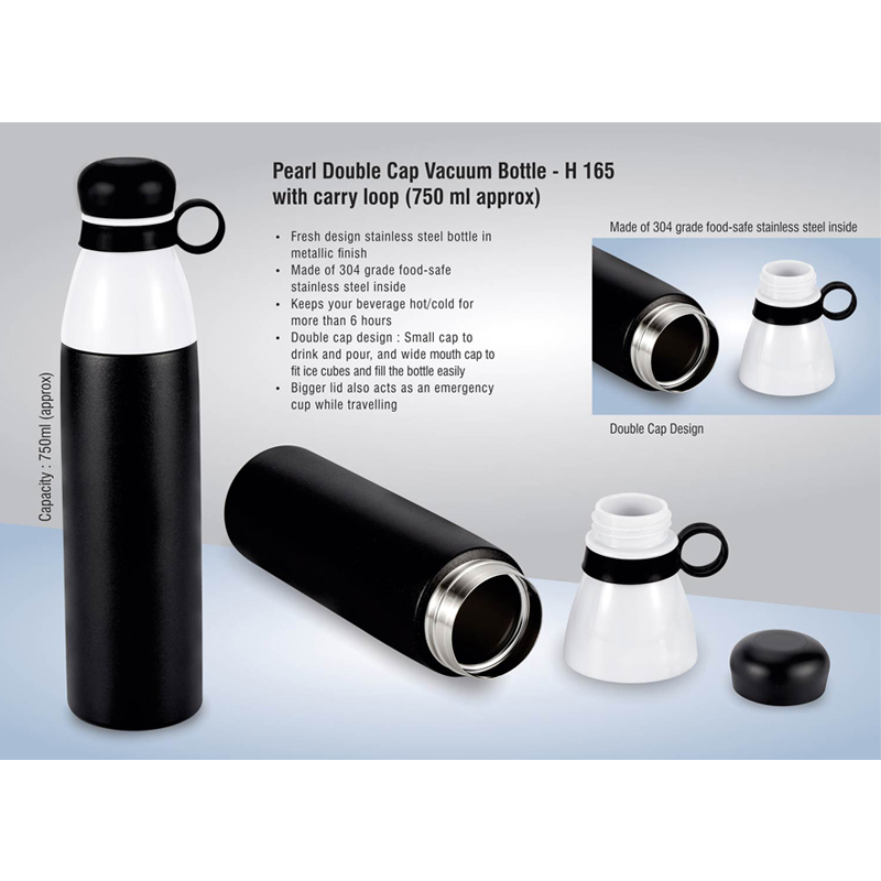 Pearl Double cap Vacuum bottle in metallic finish with carry loop (750 ml approx)