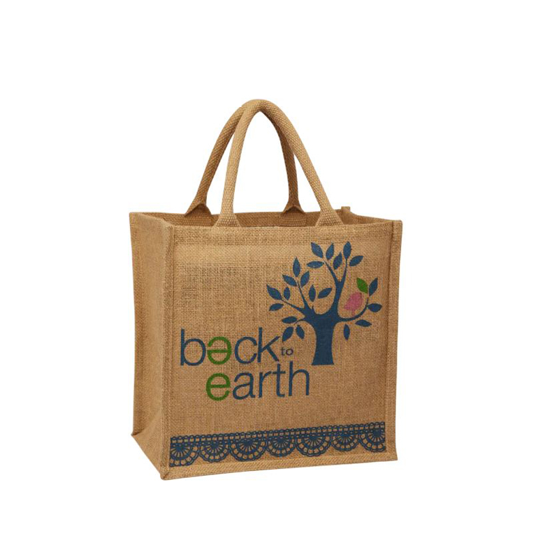Show off your eclectic fashion taste with this trendy jute bag. Woven from jute, it is both eco-friendly and stylish. The two handles make it super easy to carry. Printed with brand name and logo, it exudes a chic vibe.