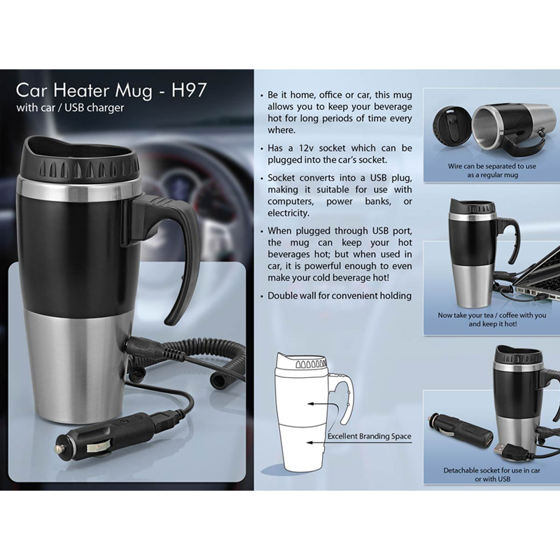 Car heater mug: with car / USB charger (500ml)